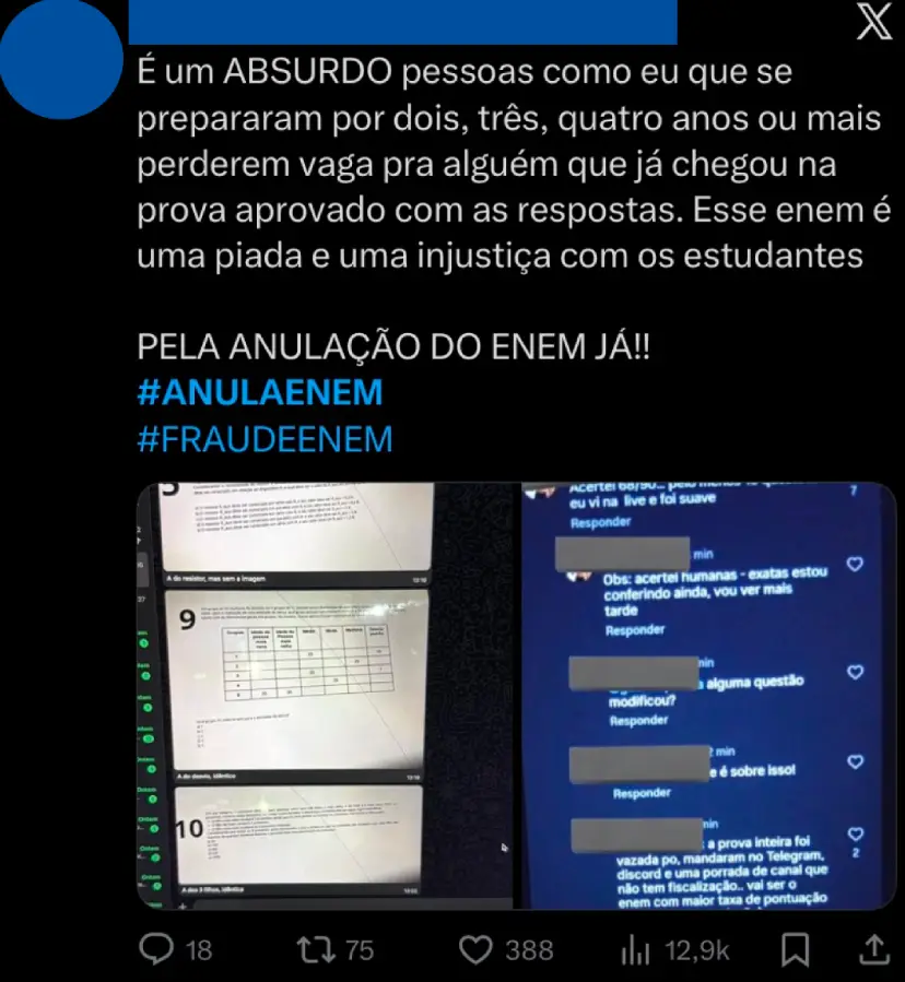 “Tem que anular a prova toda, esse vazamento compromete a credibilidade do exame”