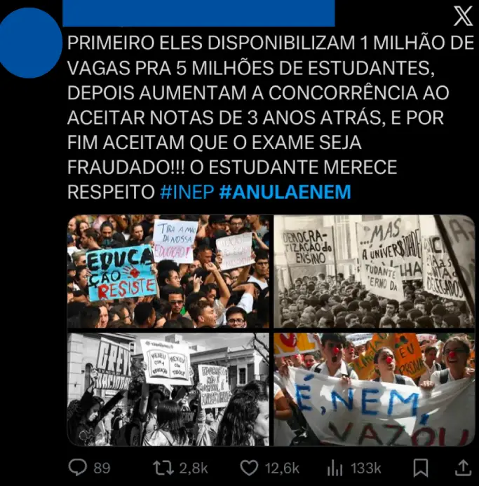 Outro estudante vai além ao afirmar que o vazamento comprometeu a credibilidade do exame como um todo, argumento usado por aqueles que defendem a anulação completa do Enem 2025.