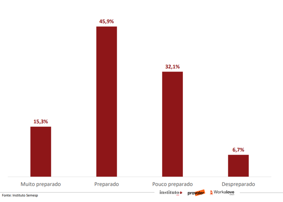 De acordo com a pesquisa, 38,8% dos entrevistados se sentiram pouco preparados ou despreparados para o mercado de trabalho após concluir a graduação. Alguns dos motivos citados foram: falta de atividades práticas; conteúdos muito teóricos e desatualizados; falta de orientação profissional e problemas pessoais como insegurança e medo. Além disso, os entrevistados afirmaram que o período de pandemia também foi um dos obstáculos para inserção no mercado.