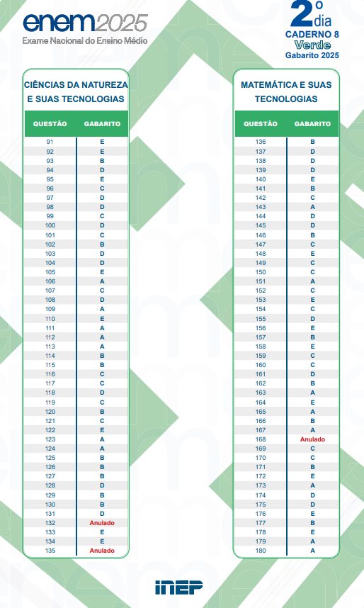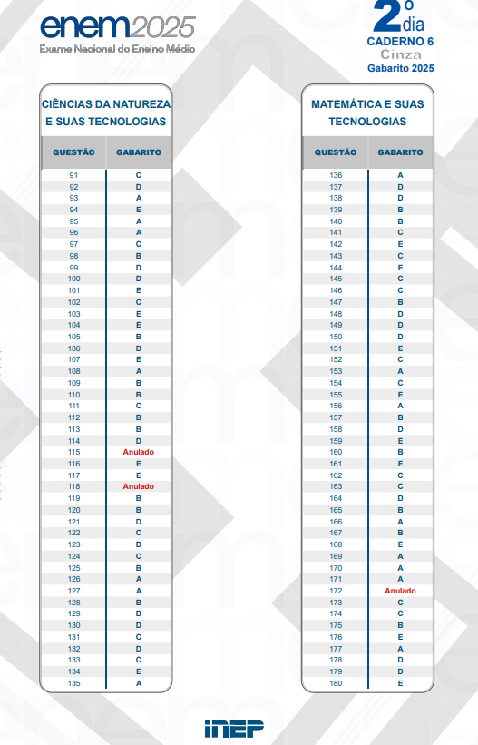 O gabarito do Enem estava originalmente previsto para quinta-feira (20), mas o Inep decidiu adiantar a divulgação após relatos de que questões semelhantes às aplicadas no domingo que circularam antes da prova. A polêmica levou o órgão a investigar a possível antecipação de itens e, com base na análise técnica, anular três questões do exame.