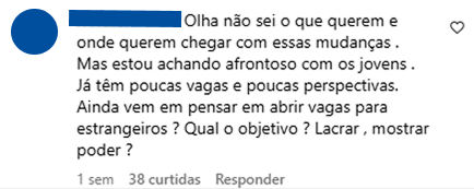 Estudantes afirmaram que o país enfrenta dificuldades para atender sua própria demanda interna. Uma usuária declarou: “Não tem vaga nem para o brasileiro. O governo parece mais preocupado com a aparência fora do país do que com a educação dentro dele.” Outra estudante reforçou: “Um absurdo criar vagas para estrangeiros, tem que ter vaga para os nossos jovens, isso sim.”