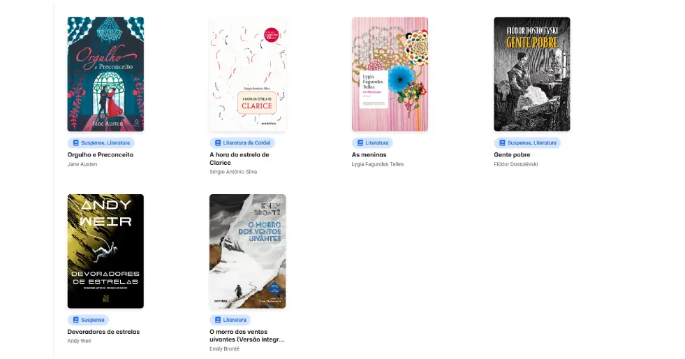 O acervo inicial conta com cerca de 8 mil títulos. Entre as obras disponíveis estão clássicos em domínio público, que já podem ser distribuídos gratuitamente, além de livros contemporâneos disponibilizados por meio de parcerias com editoras e autores. Também fazem parte da coleção materiais de apoio educacional, ampliando as possibilidades de uso tanto para leitura quanto para estudo.