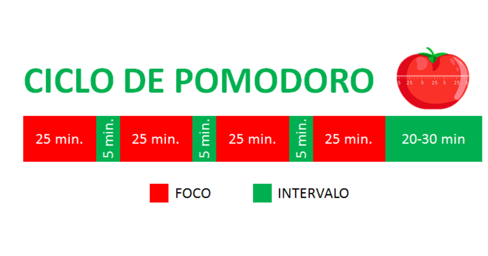 Francesco Cirillo criou o Pomodoro no final dos anos 1980. A regra básica manda dividir o trabalho em blocos de concentração, os “pomodoros”, geralmente de 25 minutos, seguidos por 5 minutos de pausa. Após quatro pomodoros, o estudante faz uma pausa mais longa, de 15 a 30 minutos.