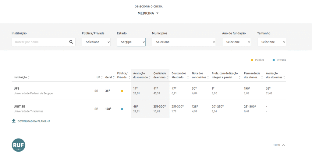 O RUF reforça que, embora competitivos regionalmente, os cursos do estado ainda têm um caminho a percorrer para alcançar a liderança nacional.