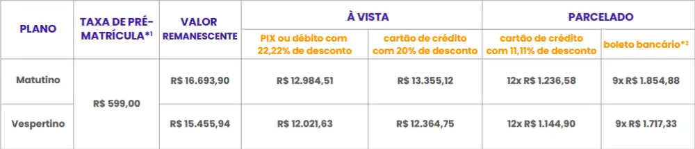 As aulas começam em 19 de janeiro de 2026, com duas opções de turno: