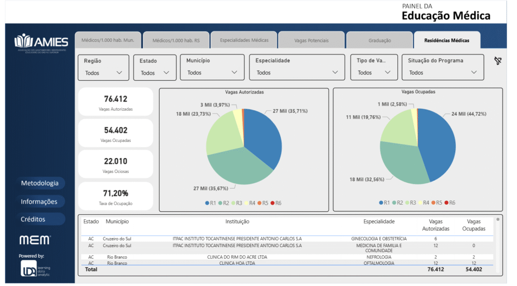 No país, dados do Painel da Educação Médica, desenvolvido pelo portal Melhores Escolas Médicas em parceria com a Associação dos Mantenedores Independentes Educadores do Ensino Superior (AMIES), apontam que o Brasil acumula mais de 22 mil vagas ociosas em programas de residência médica. O dado tem como base o último Censo da Educação Superior, divulgado em 2024.