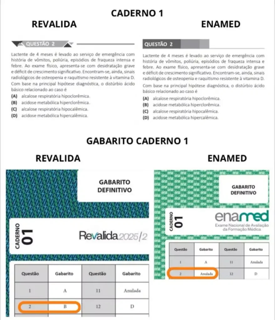 A decisão de anular as questões do Enamed aconteceu devido aos itens apresentarem falhas na formulação do enunciado e das alternativas. No entanto, no Revalida, essas mesmas questões seguiram válidas, mesmo sem alterações no texto ou nas alternativas.