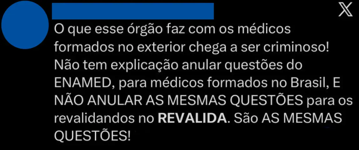 Em comentários públicos, pessoas classificaram a medida como injustificável. “O que esse órgão faz com os médicos formados no exterior chega a ser criminoso. Não tem explicação anular questões do Enamed e não anular as mesmas questões para os revalidandos no Revalida. São as mesmas questões!”, escreveu um usuário.